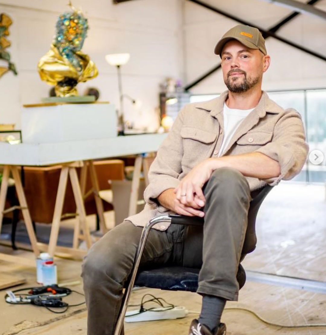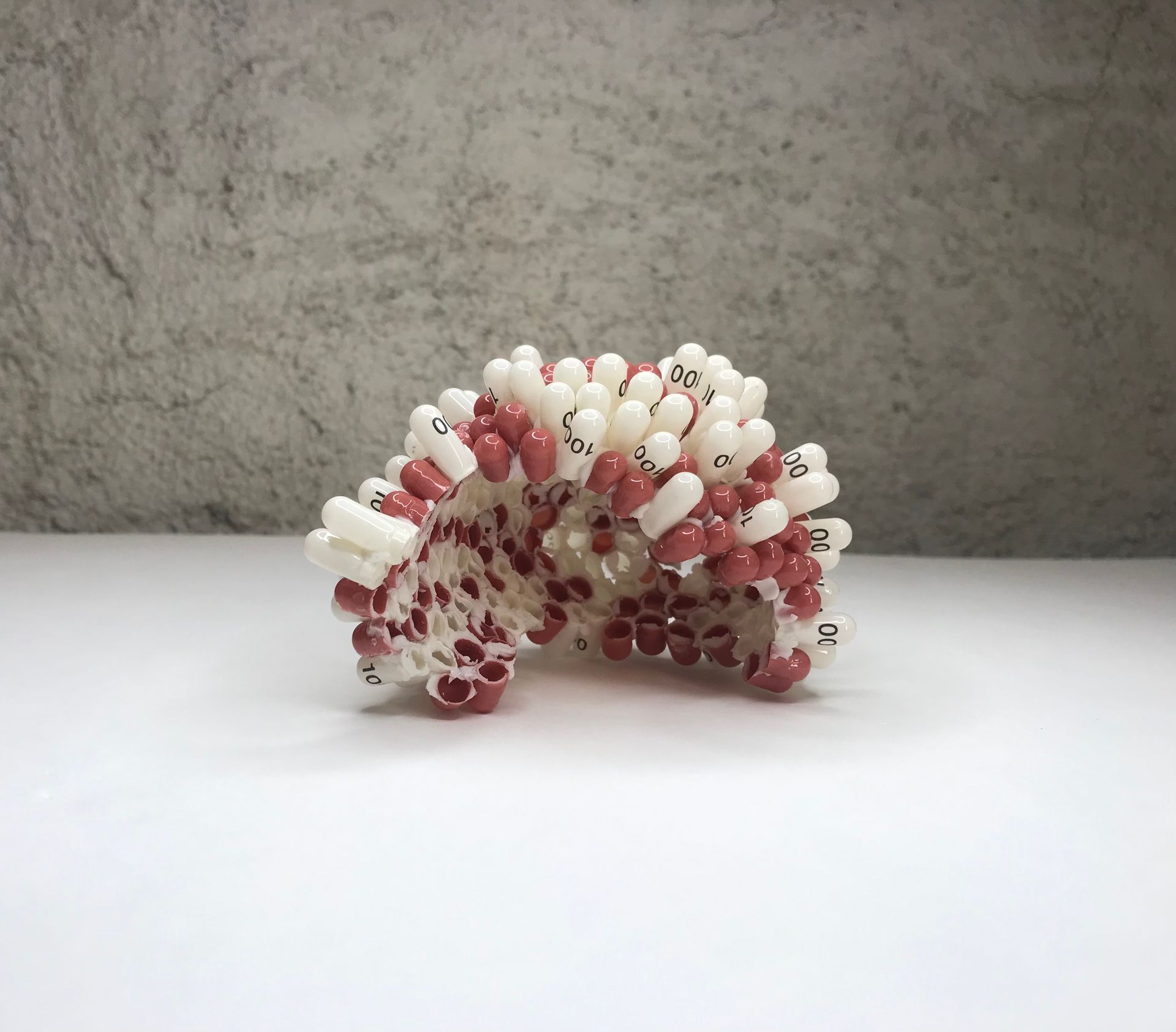 His unusual choice of materials results in work that walks the line between sculpting, fashion, and design in a surrealistic celebration of color and form.